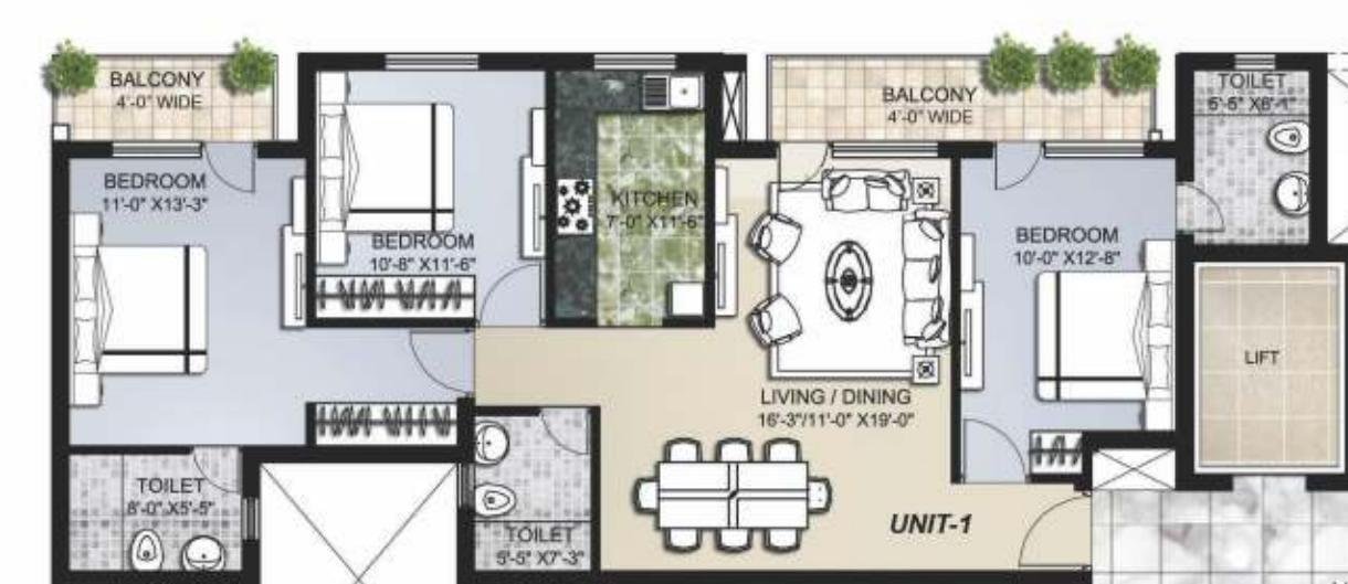 Good mix of unit sizes (2BHK, 3BHK, 4BHK) catering to various families/investors.
